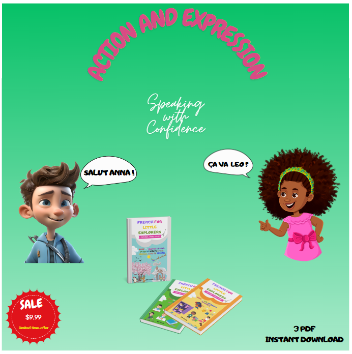 The final step to confident speaking! This set teaches clothes, daily actions, and seasons and sports, helping kids build full sentences and express themselves in French. With our easy pronunciation guide, speaking French becomes second nature!